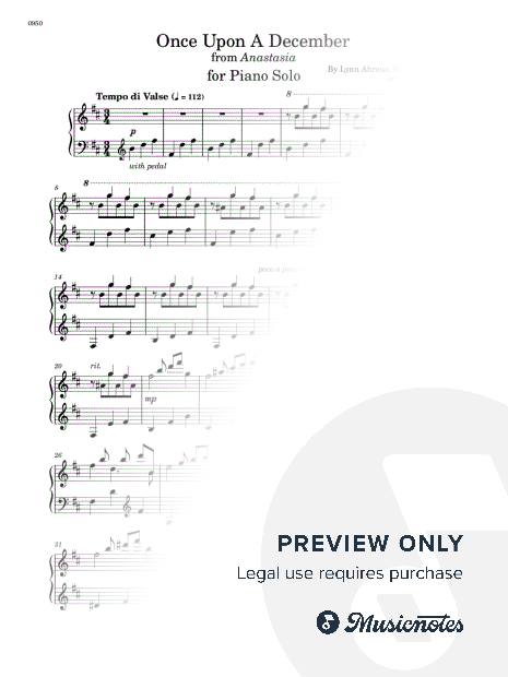 Once Upon a December from the Broadway Musical Anastasia. Arrangement for Piano Solo. With Full Score. Enjoy it!