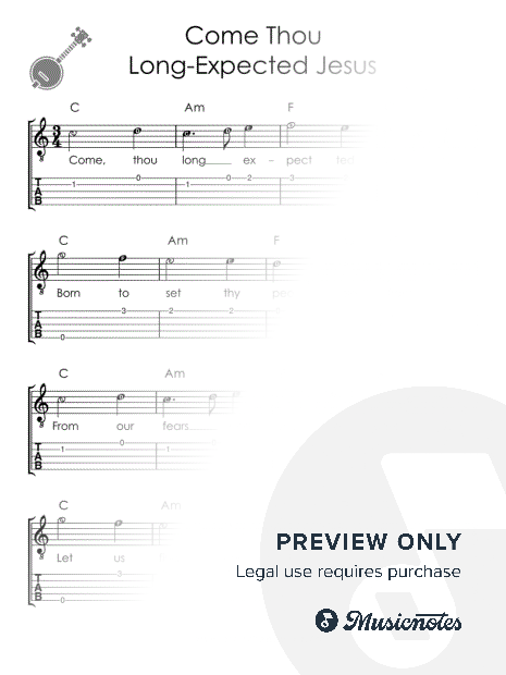 Come Thou Long-Expected Jesus I Easy Banjo Sheet Music for Beginners |