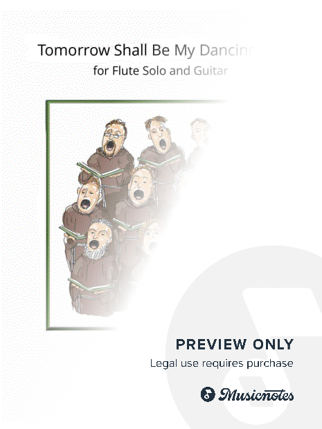 “Tomorrow Shall Be My Dancing Day” flute solo sheet music with optional guitar chord accompaniment. Traditional English carol arranged by L. Auberjeunois for late beginner/early intermediate. Download includes a two page flute solo. Key: C. Range: G1 to G2. Flute Files Publishing (CH52-1079B).
