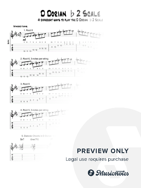 This sheet shows guitarists 4 different ways to play the D Dorian b2 Scale: