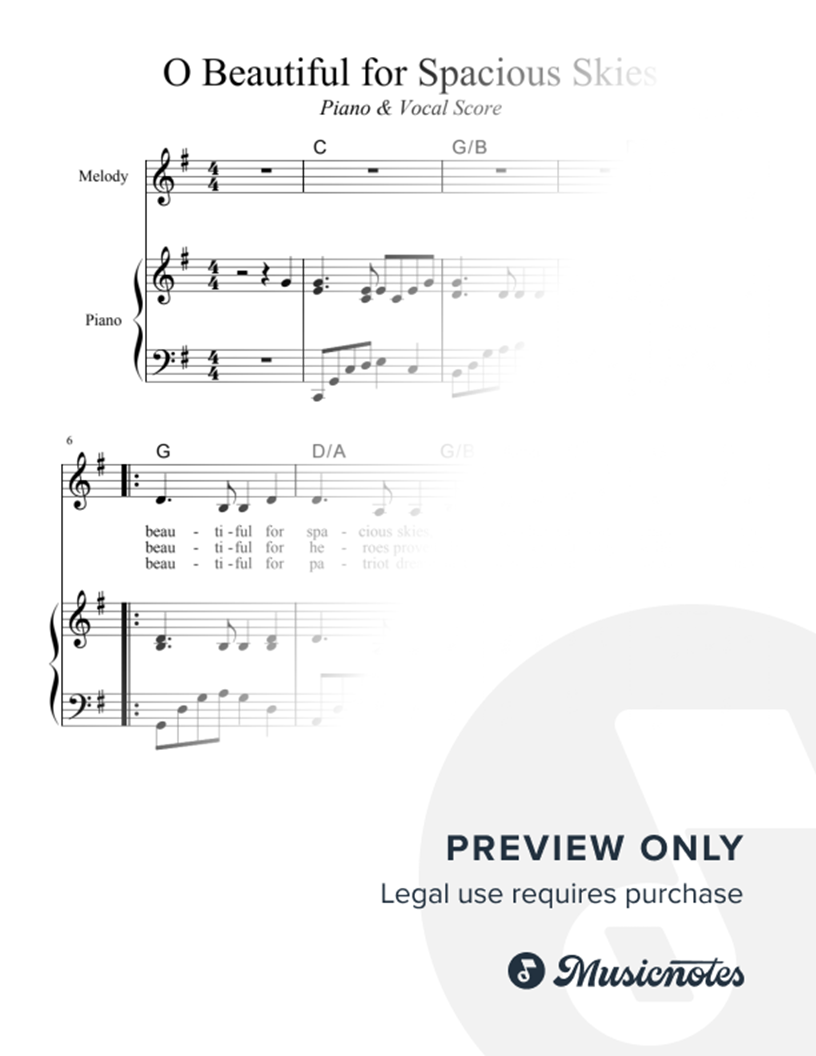 O Beautiful for Spacious Skies / America the Beautiful (Piano Vocal) |