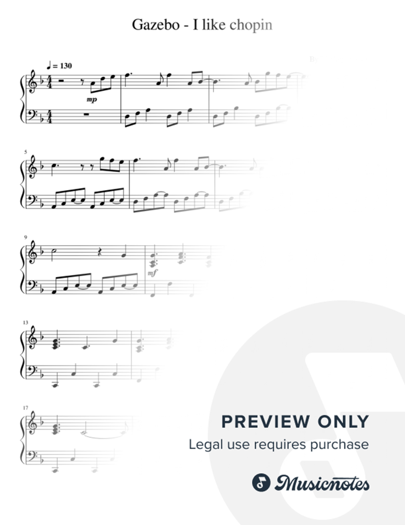 I like chopin (Gazebo), for Easy Piano, Sheet Music 4 Pages.