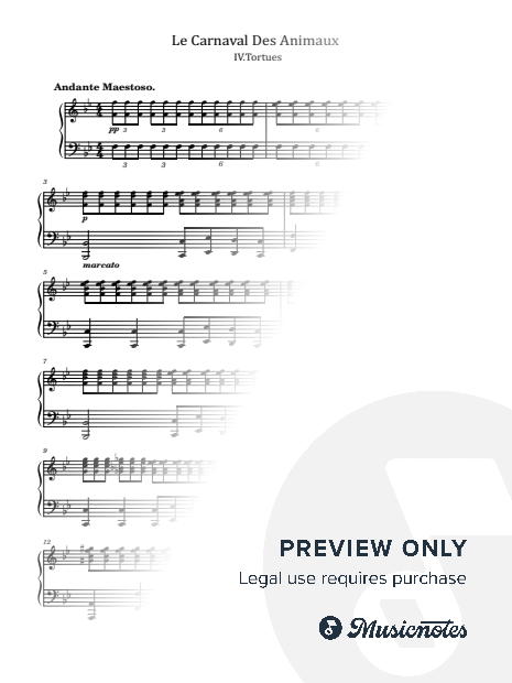 C.Saint-Saens, Le Carnaval Des Animaux, IV. Tortues, for Piano Solo Original |