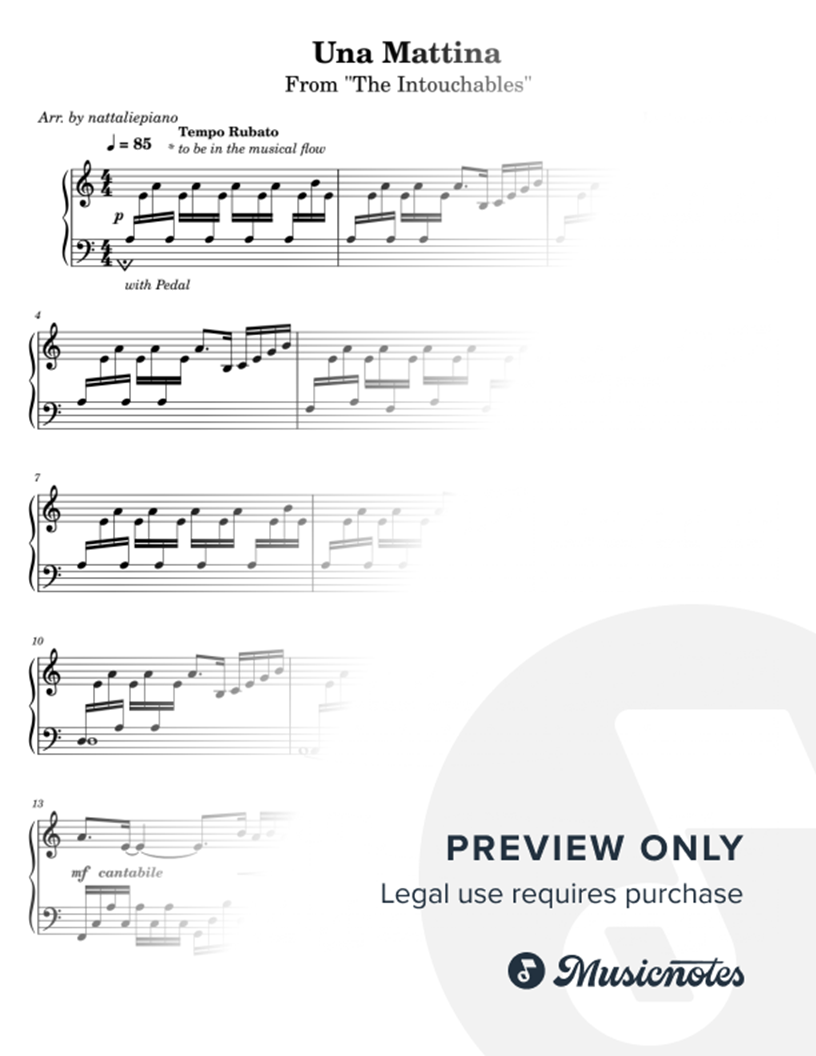 Sheet music for Una Mattina by Ludovico Einaudi, arranged for piano. Perfect for intermediate and advanced players who enjoy contemporary classical and minimalist music. Expressive piano score ideal for performance, practice, and learning this iconic composition.