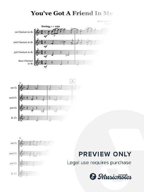 The theme from the Pixar film Toy Story, this is a light, cheery tune that is guaranteed to put a smile on listeners' faces. A great addition to gigging repertoire. Arranged for clarinet quartet.