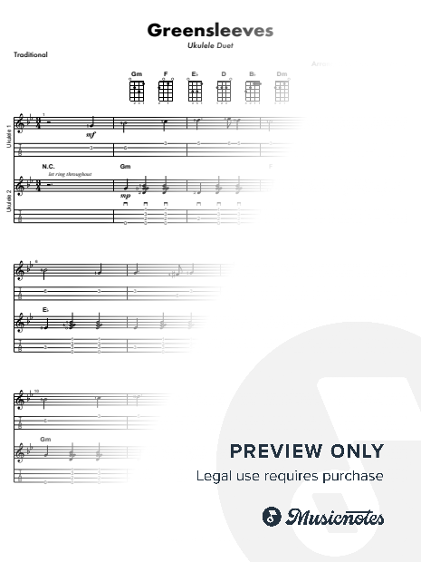 A ukulele duet arrangement of this traditional folk song, suitable for beginner to intermediate level ukulele players. In standard notation and TAB, with fingering and picking suggestions notated in the score for ease of learning.