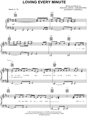 Lyrics begin: "I was never really breathing, my heart was never really beating, till you held me in your arms."
