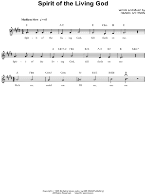 Lyrics begin: "Spirit of the living God, fall afresh on me."