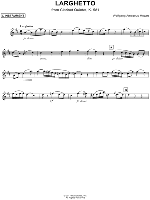 "Larghetto from Clarinet Quintet, K. 581" Sheet Music