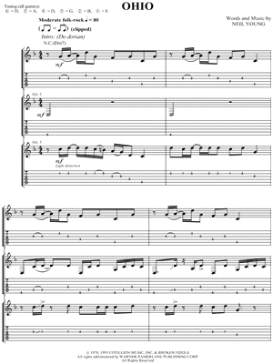 Lyrics begin: "Tin soldiers and Nixon's coming we're finally on our own this summer I hear the drumming four dead in Ohio."