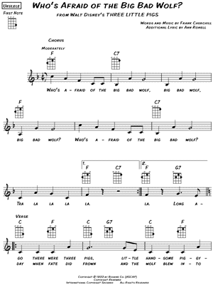Lyrics begin: "Who's afraid of the big bad wolf, big bad wolf, big bad wolf?"