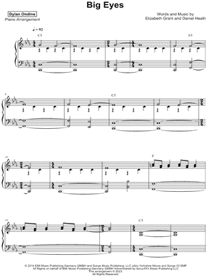 Browse our 2 arrangements of "Big Eyes." Sheet music is available for Piano, Voice with 3 scorings in 4 genres. Find your perfect arrangement and access a variety of transpositions so you can print and play instantly, anywhere.