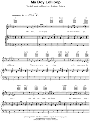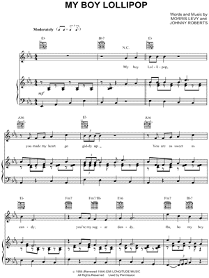 Lyrics begin: "My boy Lollipop, you made my heart go giddy up."