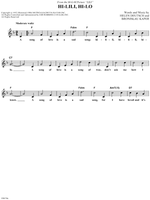 Lyrics begin: "A song of love is a sad song; hilili, hilili, hilo."