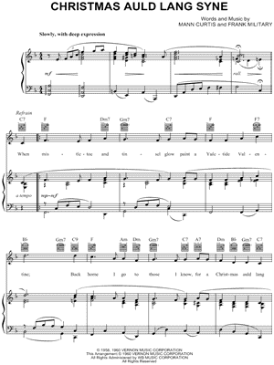 Lyrics begin: "When mistletoe and tinsel glow paint a Yuletide Valentine; back home I go to those I know for a Christmas Auld Lang Syne."