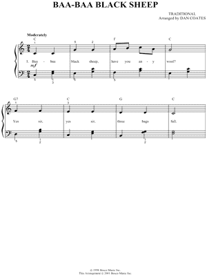 Browse our 8 arrangements of "Baa! Baa! Black Sheep." Sheet music is available for Piano, Voice, Guitar and 11 others with 9 scorings and 4 notations in 6 genres. Find your perfect arrangement and access a variety of transpositions so you can print and play instantly, anywhere.