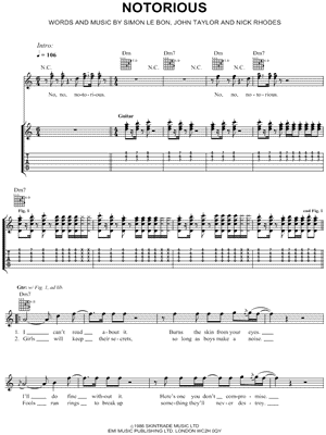 Lyrics begin: "No, no, notorious. No, no, notorious."