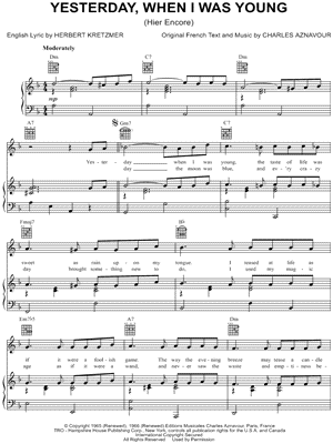 Lyrics begin: "Yesterday when I was young, the taste of life was sweet as rain upon my tongue."