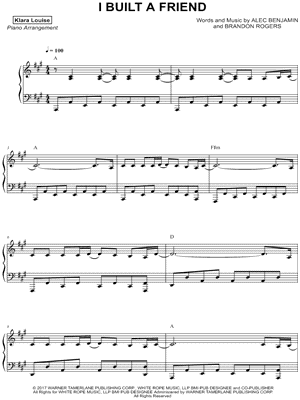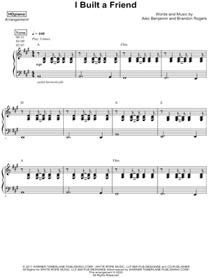 Lyrics begin: "I built a friend with three pieces of plastic and a pen."
