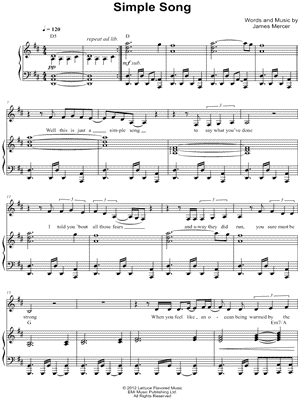 Lyrics begin: "Well this is just a simple song to say what you've done"