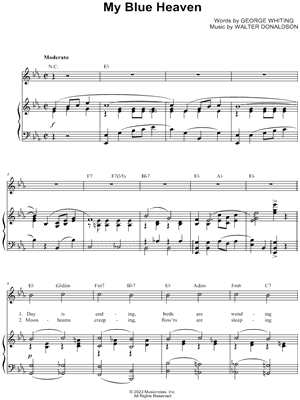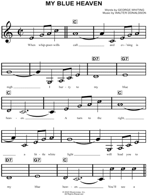 Browse our 8 arrangements of "My Blue Heaven." Sheet music is available for Piano, Voice, Guitar and 3 others with 6 scorings and 3 notations in 7 genres. Find your perfect arrangement and access a variety of transpositions so you can print and play instantly, anywhere.