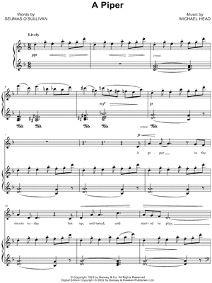 Lyrics begin: "A piper in the streets today det up, and tuned, and started to play,"