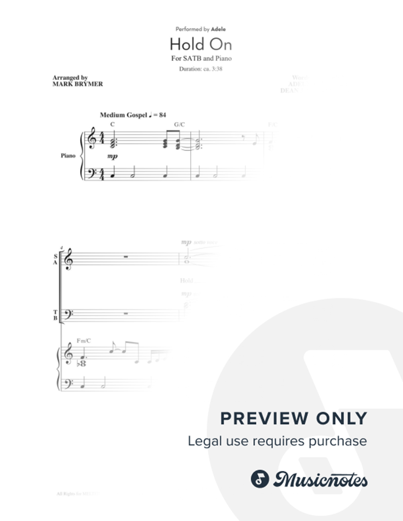 Many of the arrangements on Musicnotes have transpositions available, typically in C Major, as well as 3 sharps and 3 flats. If you do not see your desired key, you can request a transposition by reaching out to Customer Support.