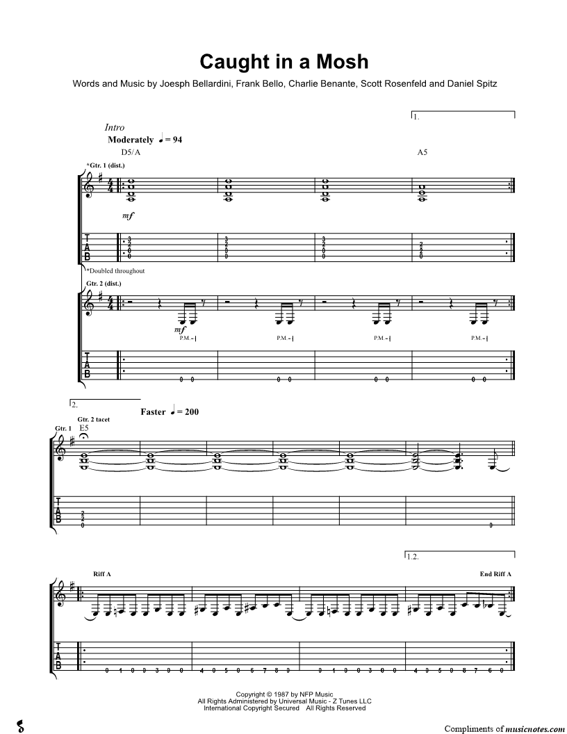 Voice 1, range: B4-C#6 Voice 2, range: B4-B4 Guitar 1, range: B2-G6 Guitar 2 Guitar 3 Guitar 4 | |