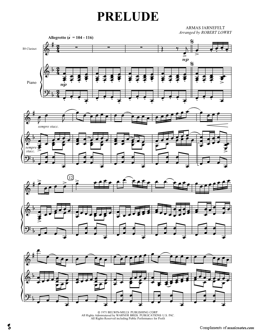 Clarinet, range: E3-G6 Piano Accompaniment | |