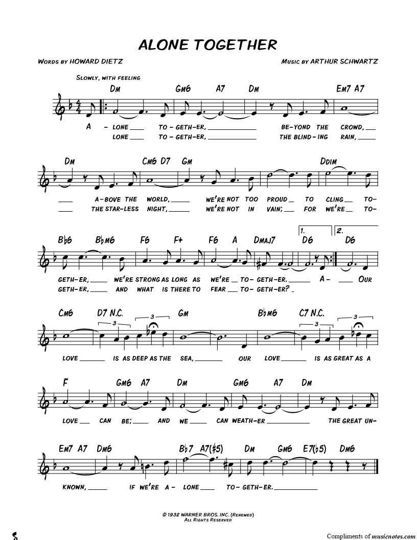 Alone together, beyond the crowd, above the world, we're not too proud to cling together, we're strong as long as we're together. |
