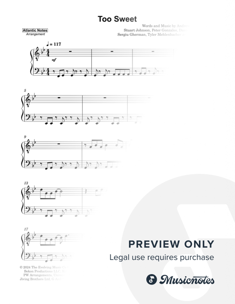 Musicnotes sells a wide variety of digital sheet music products including Singer Pros, Beginner Notes, Choral music, Piano Solos, Lead Sheets, Piano/Vocal/Guitar, Solo and Accompaniment, and fretted instrument tablature.