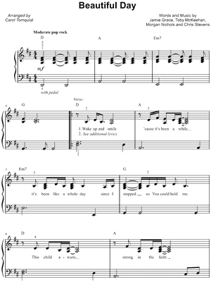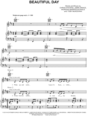 Browse our 3 arrangements of "Beautiful Day." Sheet music is available for Piano, Voice, Guitar and 1 others with 3 scorings and 1 notation in 4 genres. Find your perfect arrangement and access a variety of transpositions so you can print and play instantly, anywhere.