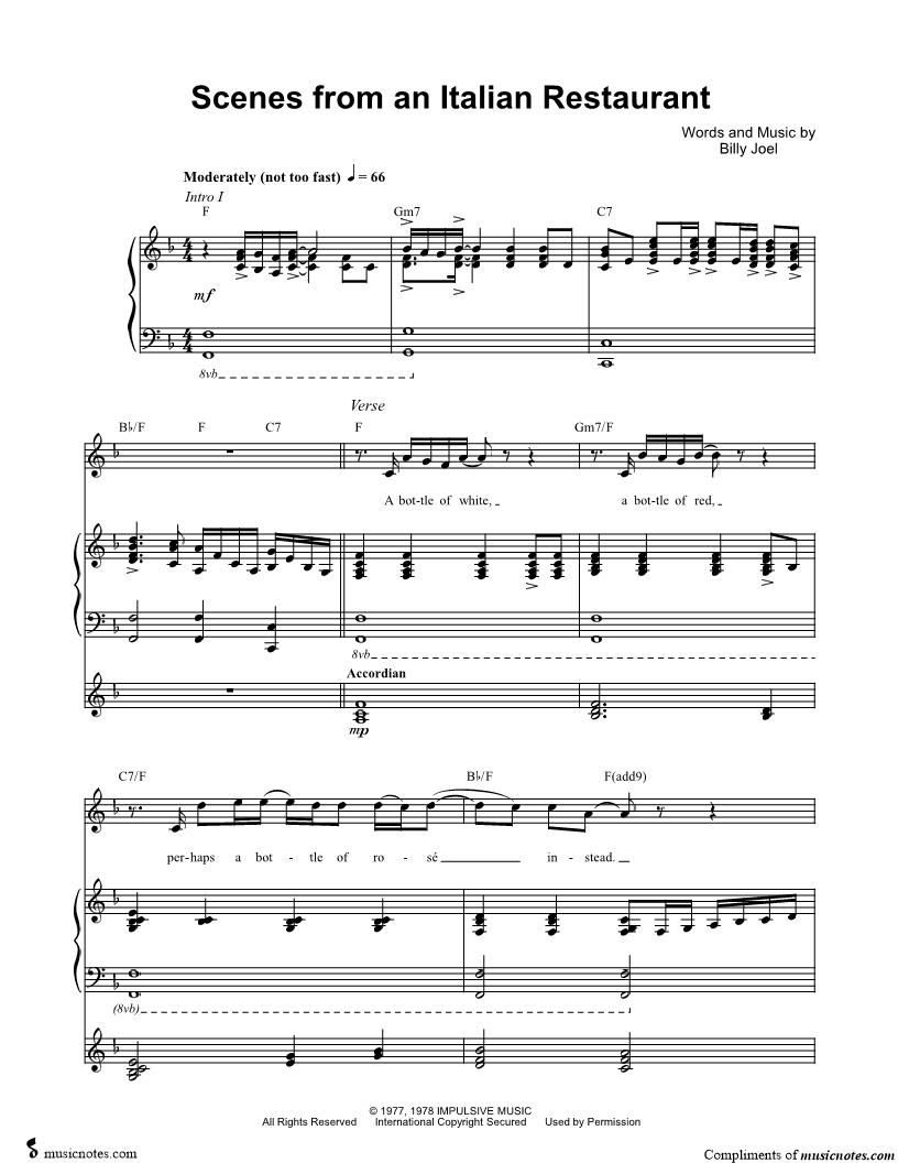 Musicnotes sells a wide variety of digital sheet music products including Singer Pros, Beginner Notes, Choral music, Piano Solos, Lead Sheets, Piano/Vocal/Guitar, Solo and Accompaniment, and fretted instrument tablature.