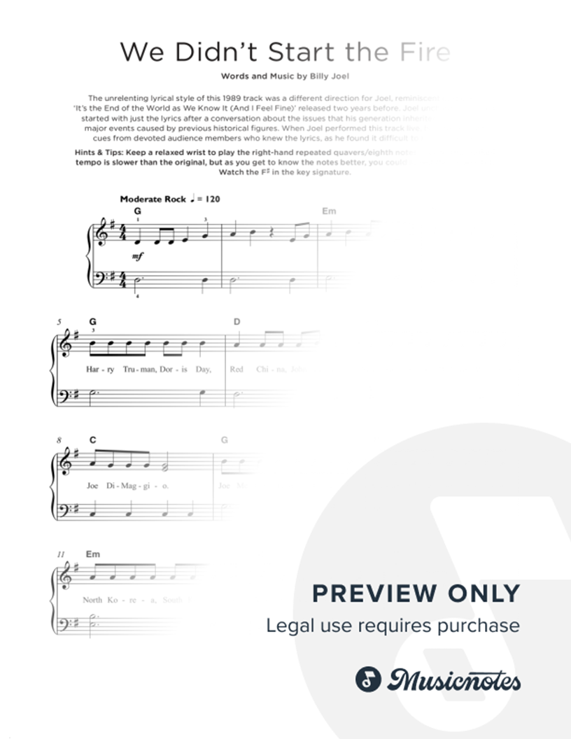Musicnotes sells a wide variety of digital sheet music products including Singer Pros, Beginner Notes, Choral music, Piano Solos, Lead Sheets, Piano/Vocal/Guitar, Solo and Accompaniment, and fretted instrument tablature.