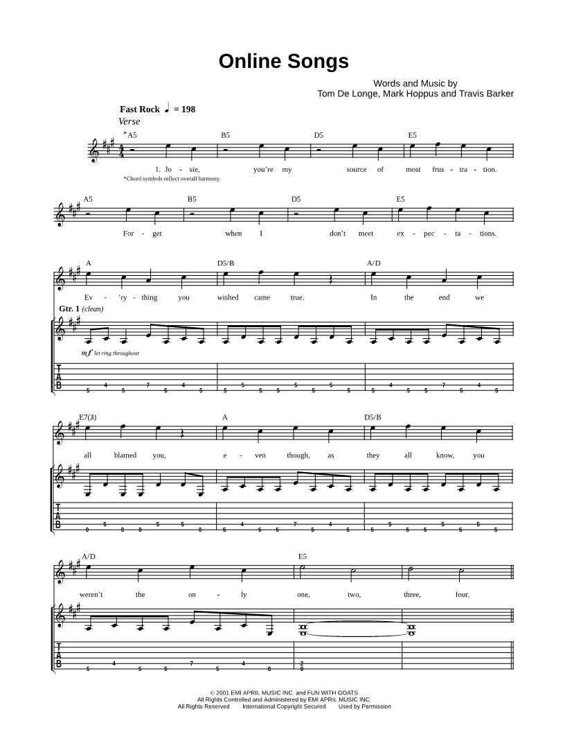 Voice, range: A4-A5 Guitar 1, range: E3-E5 Guitar 2 Backup Vocals | |