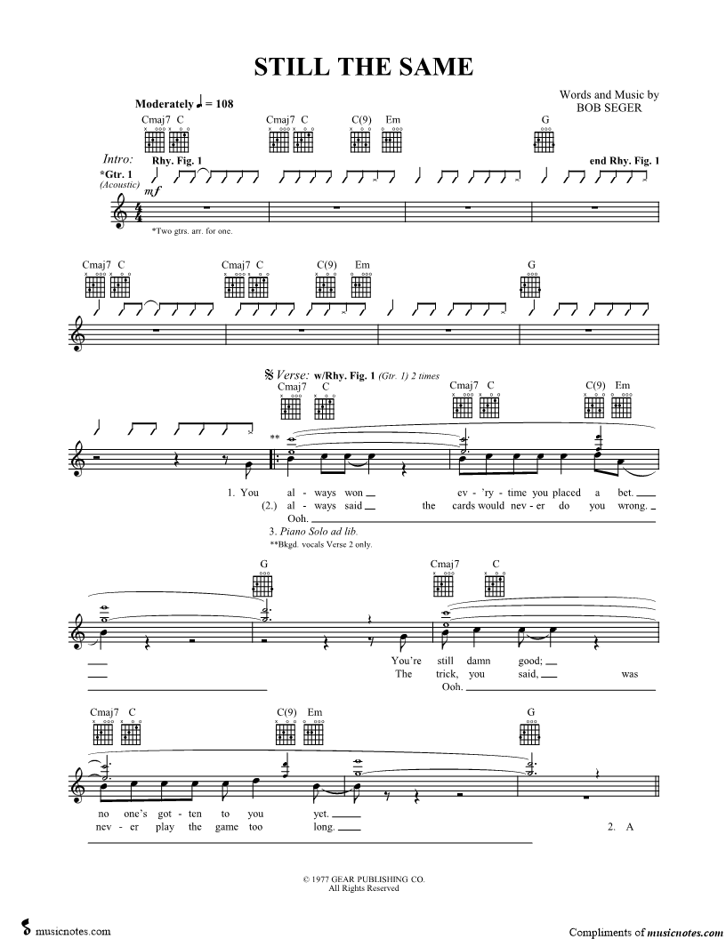 Guitar/Vocal Lyrics/Melody/Guitar |