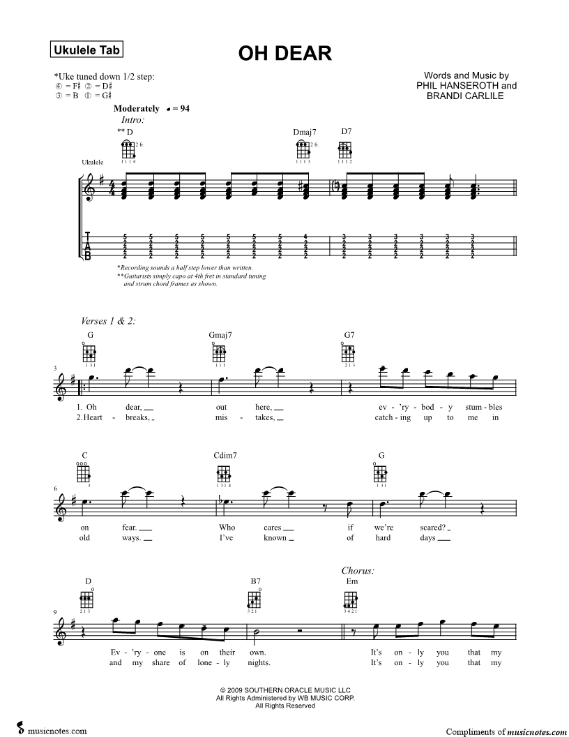 Ukulele/Vocal/Chords Ukulele TAB Leadsheet |