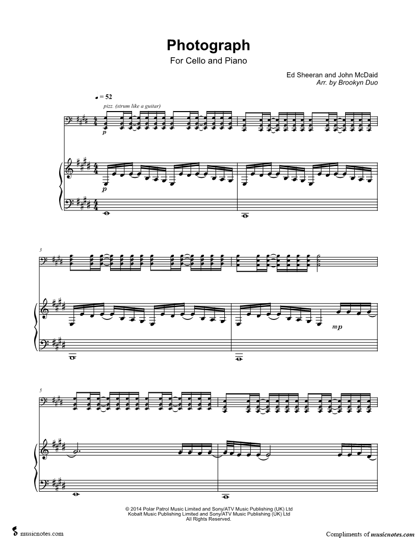 Cello, range: C#2-B4 Piano | |