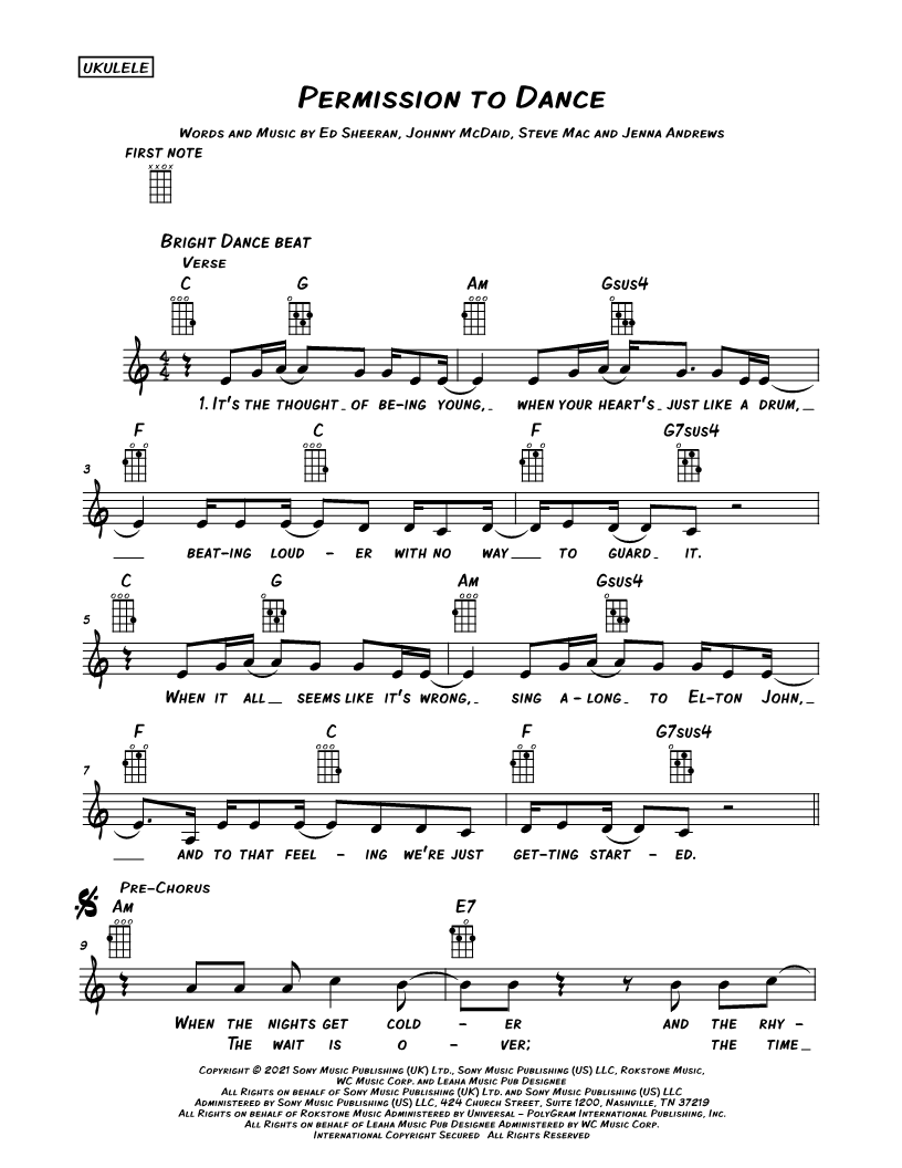 Ukulele/Vocal/Chords Leadsheet |