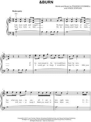 Browse our 5 arrangements of "&burn." Sheet music is available for Piano, Voice, Guitar with 3 scorings and 1 notation in 3 genres. Find your perfect arrangement and access a variety of transpositions so you can print and play instantly, anywhere.
