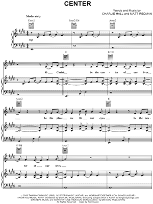 Lyrics begin: "O Christ, be the center of our lives, be the place we fix our eyes, be the center of our lives."