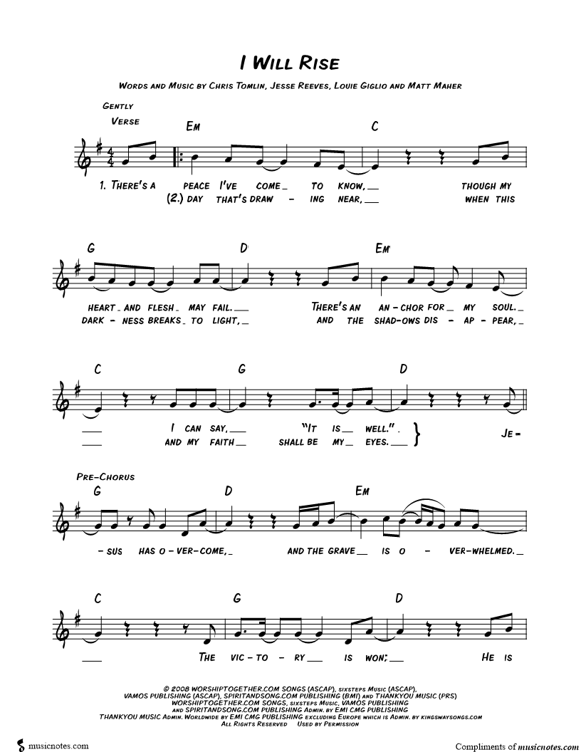 "I ordered this arrangement of I Will Rise for my singing group to try and we performed it ..." Read reviews