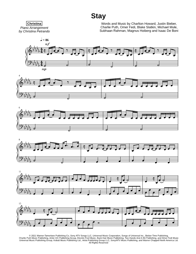 Many of the arrangements on Musicnotes have transpositions available, typically in C Major, as well as 3 sharps and 3 flats. If you do not see your desired key, you can request a transposition by reaching out to Customer Support.