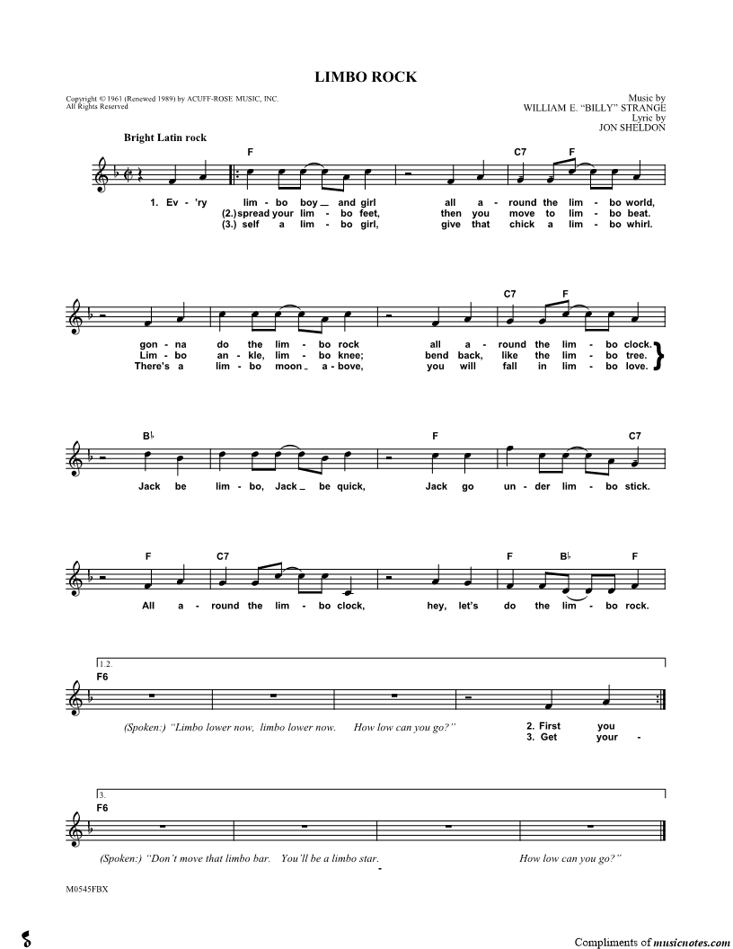 Ev'ry limbo boy and girl all around the limbo world, gonna do the limbo rock all around the limbo clock. |