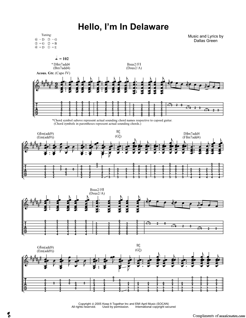 Guitar Tab Guitar/Vocal |