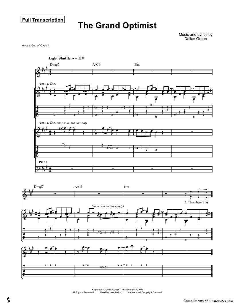 Guitar TAB Guitar/Vocal |