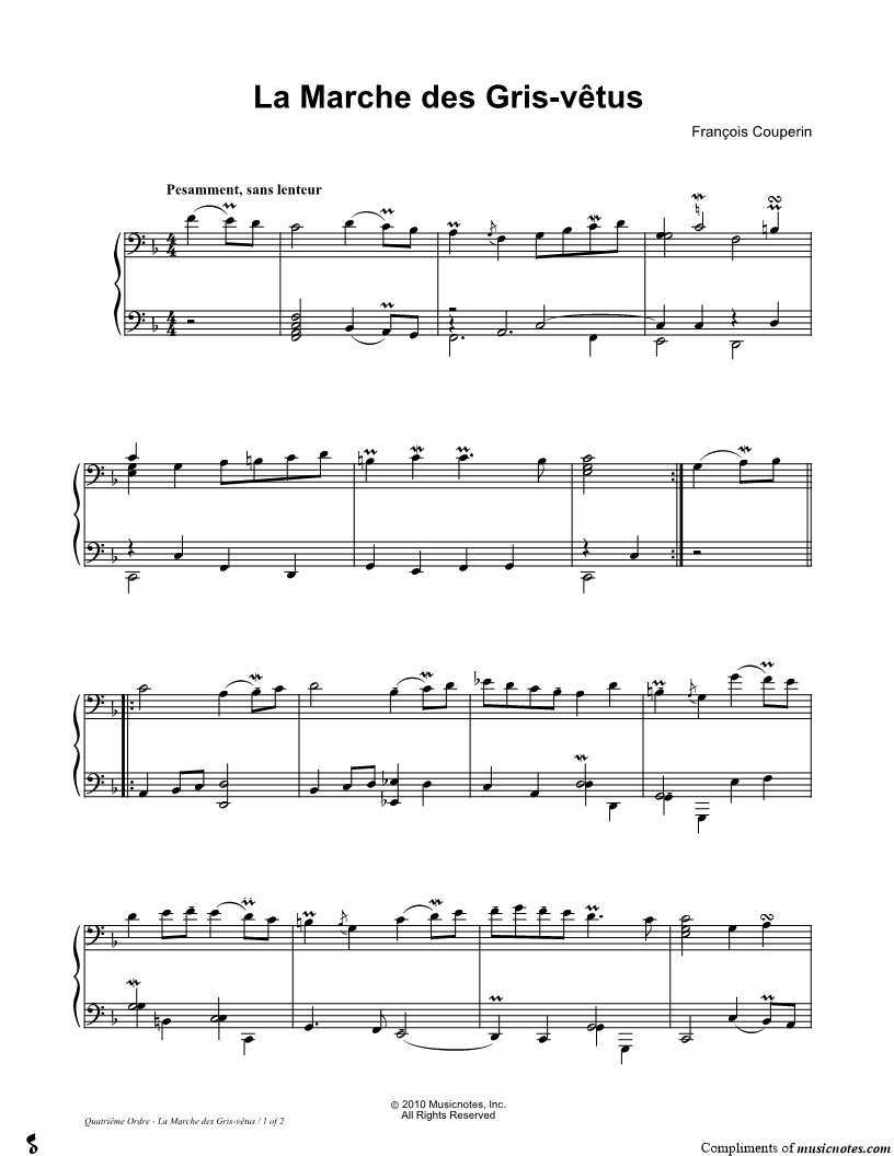1. La Marche des Gris-vêtus (click here to preview and play this piece) Composer: Scored For:Instrumental Solo Instrument:Piano Number of pages:2 Click here to purchase this piece separately for $5.99 |
