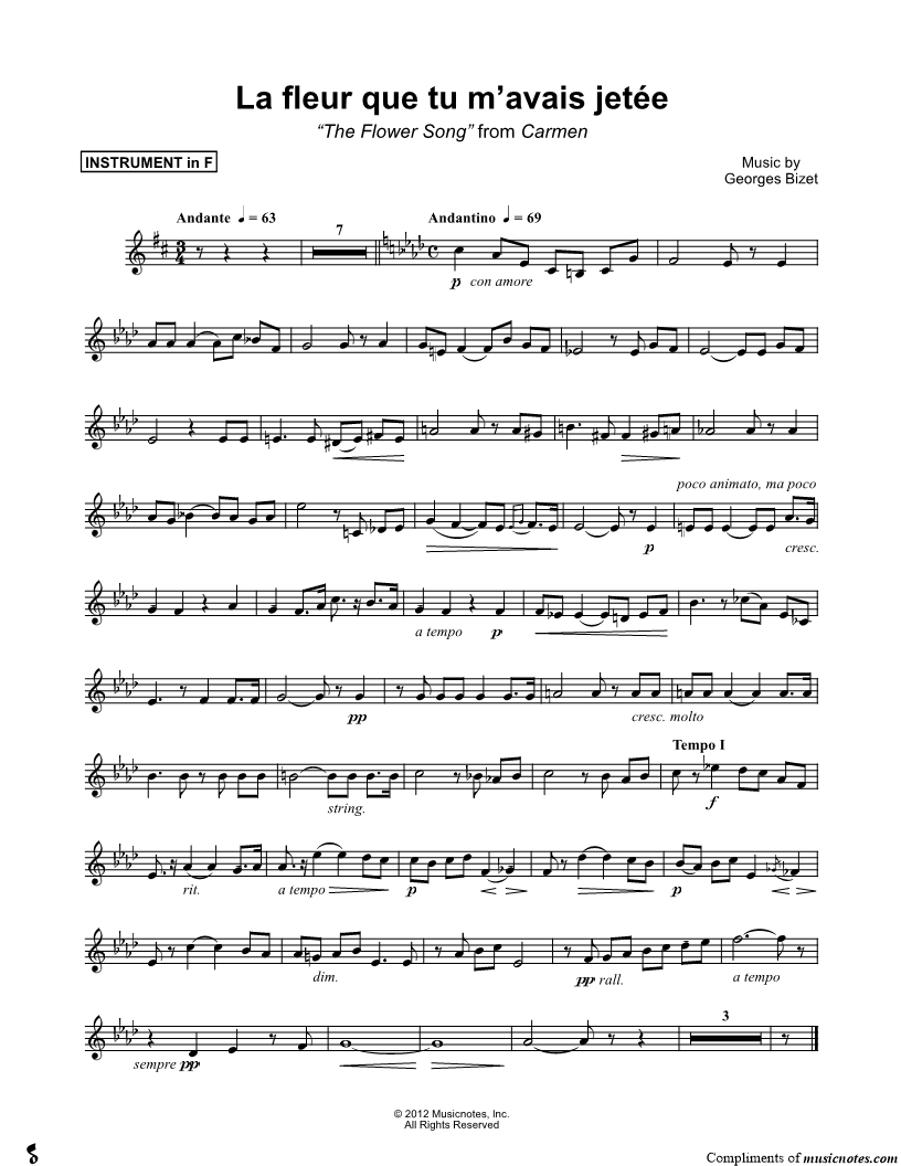 1. The Flower Song - F Instrument (click here to preview and play this piece) Composer: Scored For:Instrumental Solo Instrument:F Instrument Number of pages:1 Click here to purchase this piece separately for $4.99 |