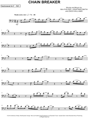 1. Chain Breaker - Bass Clef Instrument (click here to preview and play this piece) Performer: Composers: Lyricists: Scored For:Instrumental Solo and Instrumental Part Instruments:Bass Clef Instrument, range: D3-G4, Cello, Double Bass, Trombone, Bassoon and Baritone Horn or Euphonium Number of pages:3 Click here to purchase this piece separately for $4.99 |