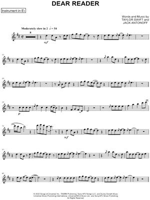 1. Dear Reader - Eb Instrument (click here to preview and play this piece) Performer: Composers: Lyricists: Scored For:Instrumental Solo and Instrumental Part Instruments:Eb Instrument, range: D4-G6, Alto Saxophone and Baritone Saxophone Number of pages:2 Click here to purchase this piece separately for $4.99 |